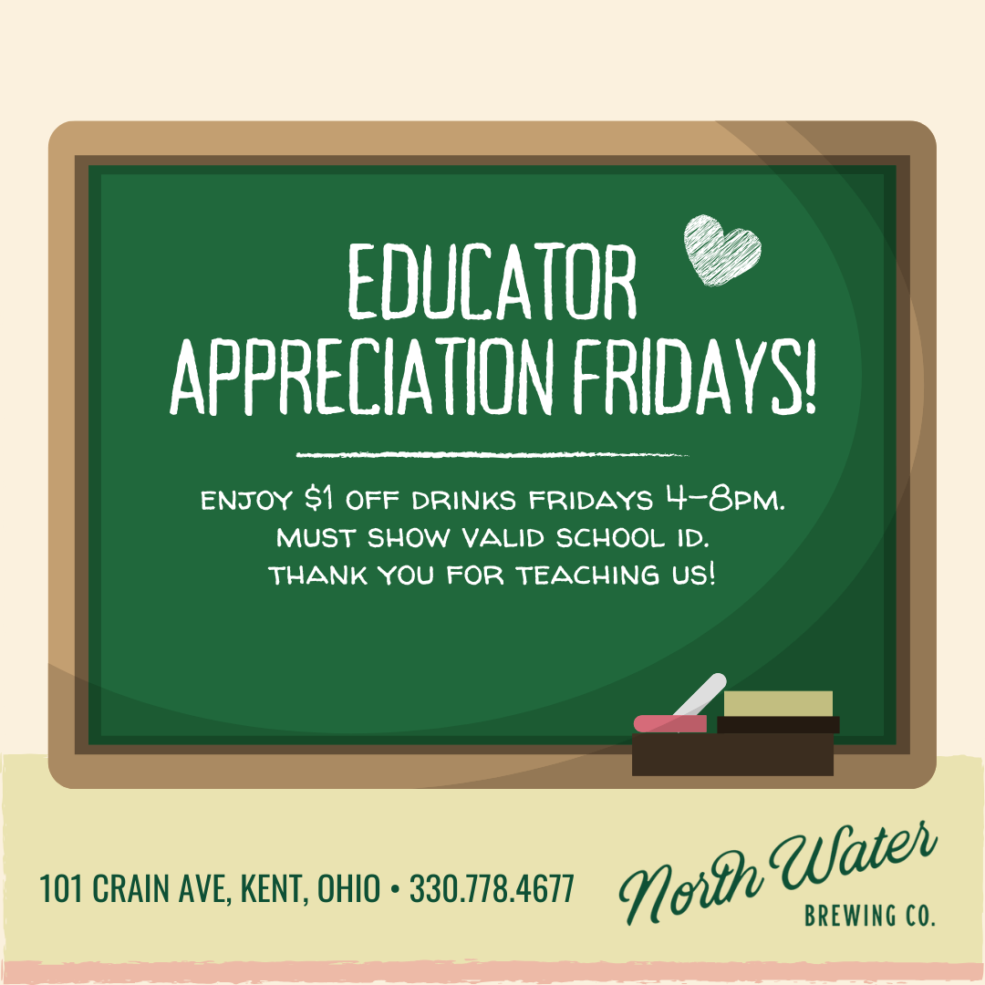 Introducing Educator Appreciation Fridays! βοΈπ§βπ«π As a way to say thank you to all the hard working teachers, professors, and educators in our community, enjoy $1 OFF drinks every Friday from 4-8PM with your school ID. Thank you for all you do teaching the next generation!