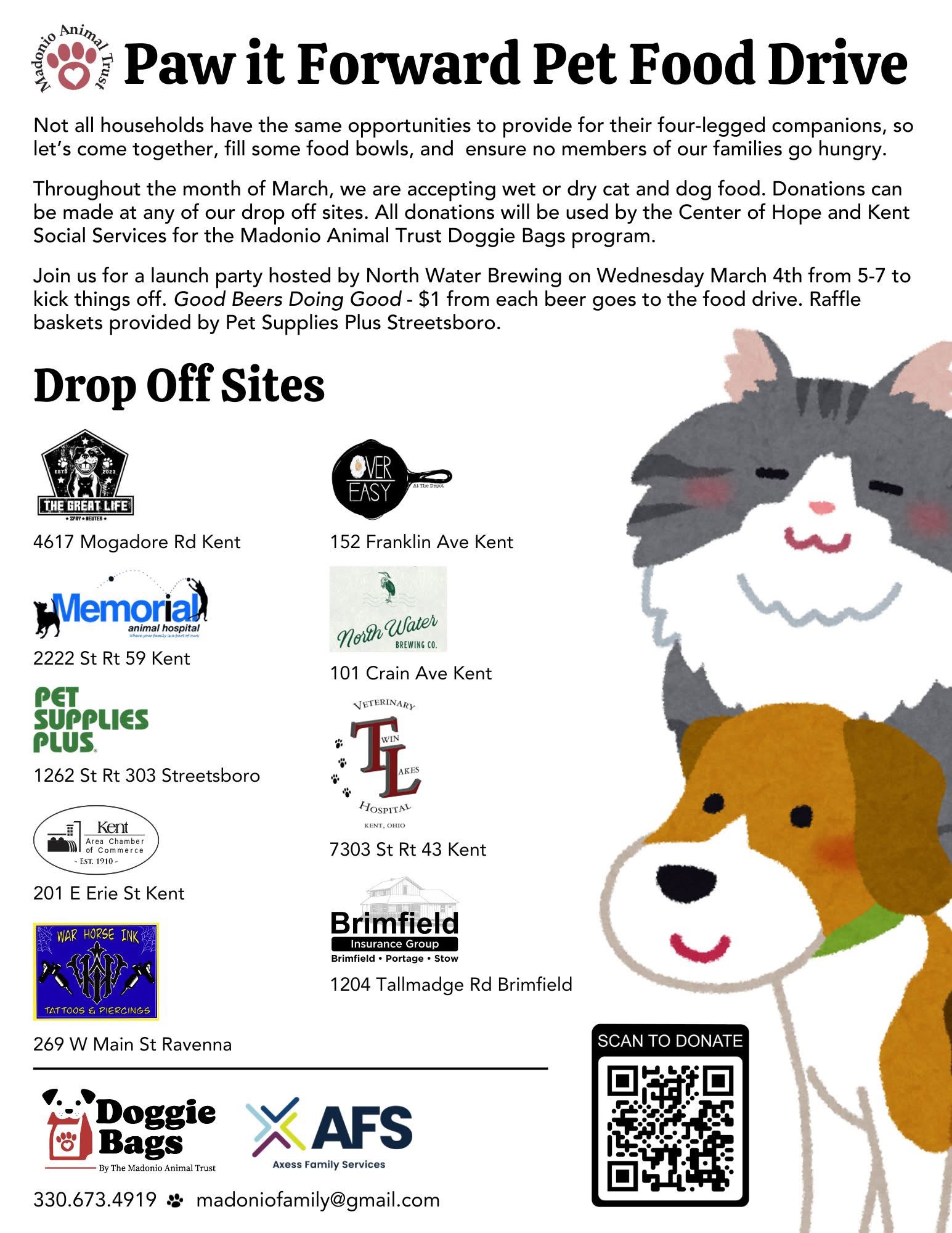 Please join us for a celebratory launch party on Wednesday, March 4th from 5-7 PM, where $1 from every beer sold will go directly to the fund! We will also be selling tickets for raffle baskets donated by Pet Supplies Plus in Streetsboro.